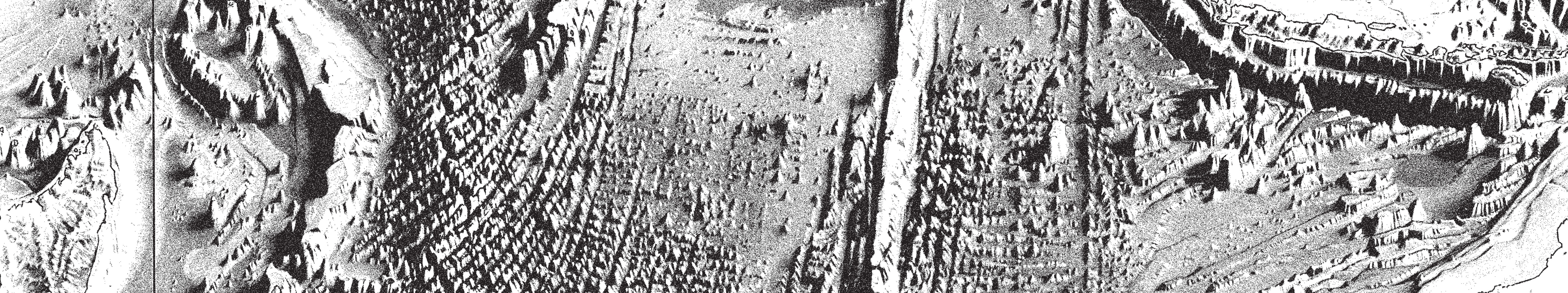 My interest in this map was two-fold. First is that this is the 'landscapes' or topography for the beings in the Benthos - the mountains, the valleys and continental shelves. The other reason is the exquisite detail and rendering of the light and shadow representing each hill, the mapping of each data point to a color and shade. The precision of drawing across each second of each minute or every latitiude and longitude is exquisite.