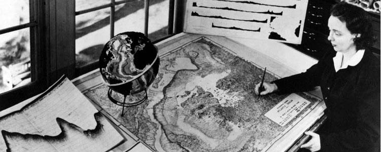 The various images of Marie Tharp's workspace evoke questions about the tools(physical, analytical, mathematical) and methods (measurements, mapping), and the tools and methods of recording at the ship. And I wonder what the data looked like and what else were the conversations like. Because it is an extraordinary acomplishment to be able to single-handedly map the entire underwater topology.